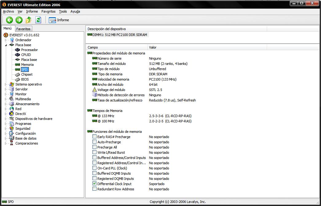 Me propongo aligerar un poco mi patata de PC, al cual le tengo cariño, y dado el uso que le doy actualmente, no tengo intención de cambiarlo de momento. La operación sería instalar 512 Mb más de Ram (actualmente tiene 512 Mb en un módulo). La memoria que tiene actualmente es del tipo dr SDRAM pc2100 a 133 Mhz, dato que no tengo muy claro. Para despejar dudas os pongo la captura de la pantalla del Everest para que veáis todos los datos. La cosa es que, actualmente estas memorias no existen, o yo no las encuentro, sin embargo, el vendedor de pcbox me asegura que puedo instalar una dr a 400, y que las dos funcionaran a la velocidad de la más lenta. La placa veo que la máxima velocidad que admite es 266. Funcionara el invento? Gracias y saludos.