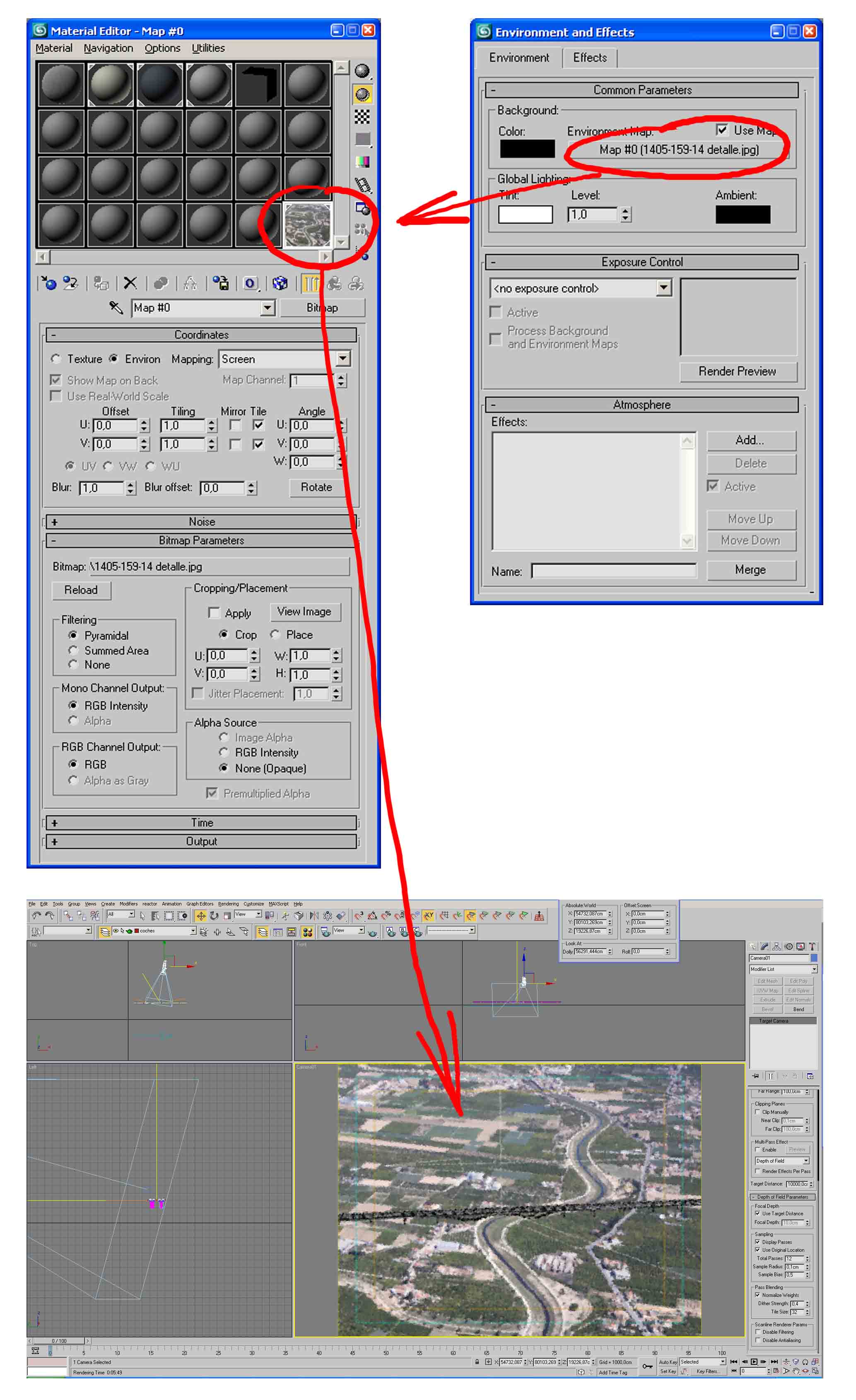 He visto que hay gente que introduce la imagen de fondo en la vista de la cámara de otra forma. Sé que para ello se utiliza la imagen como un mapa (mirar imagen, maximizarla) en el editor de materiales. Yo he intentado hacerlo, pero no he conseguido que funcione.