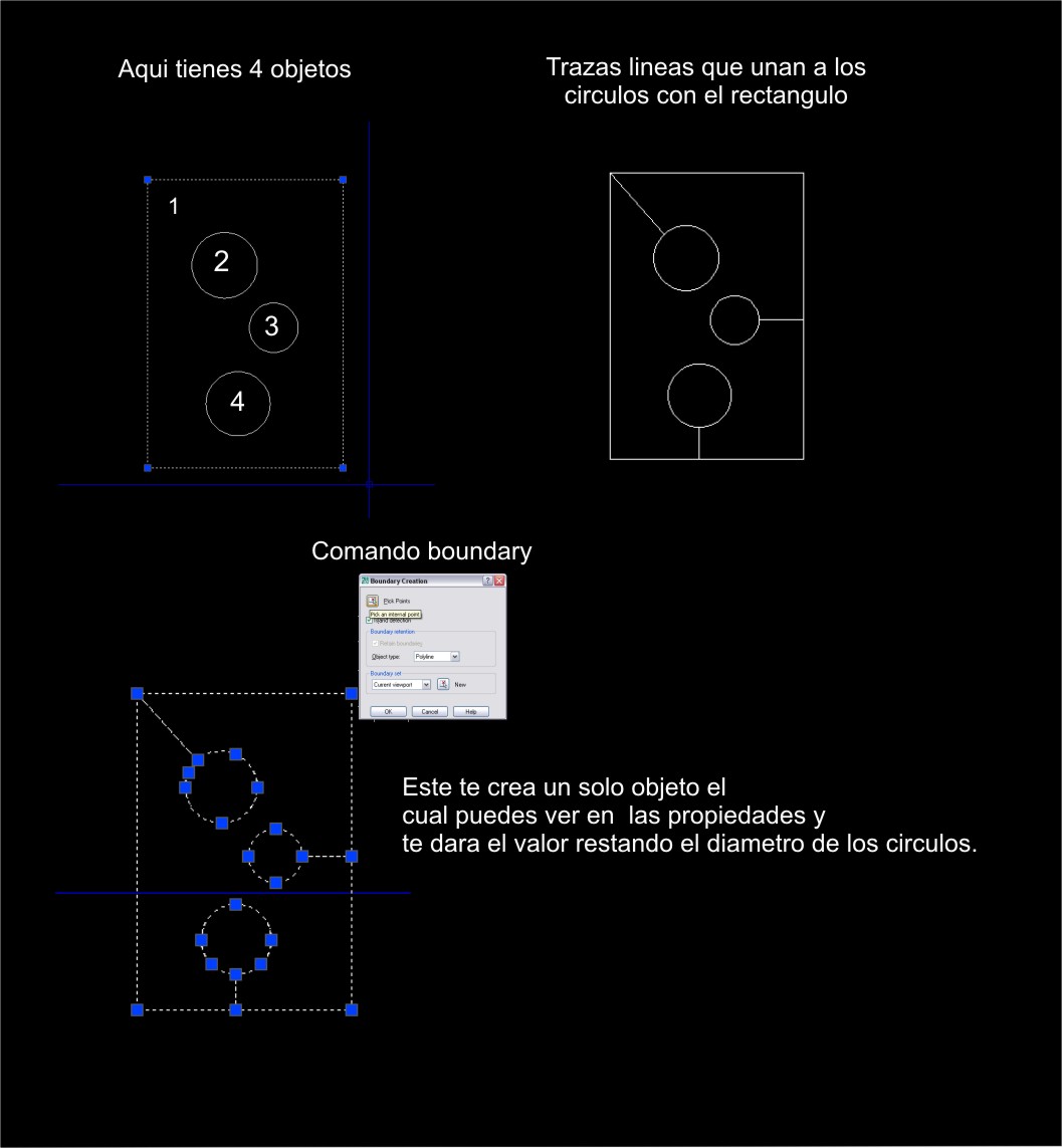 Solo como apunte del comando Area. Pongo un ejemplo para explicar mejor, también va imagen. Digamos que tienes un rectángulo y quieres sacar el área, aplicas el comando y te pide que selecciones las 4 esquinas para darte el resultado. Para simplificar esto le das a la opción object de las tres que te da, después seleccione una línea del mismo y te da el resultado.