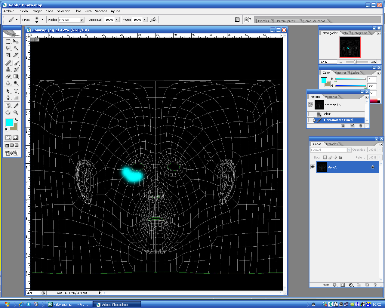 6- Pintas a tu gusto en Adobe Photoshop o pones una fotografía basándote en tu malla.