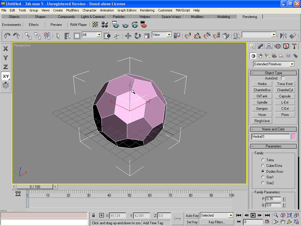 Selecciona extended primitives - Hedra y en parámetros selecciona dodec/icos.
