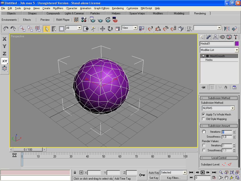 Aplica un modificador MeshSmooth a la primitiva creada y en subdivisión por valor 1.