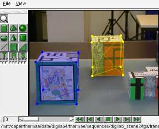Con estas herramientas el usuario puede colocar en la escena objetos 3d y así poder testar la calidad del track. Primero se incorpora el objeto (primitiva) a la escena. Se coloca de una manera sencilla mediante la herramienta ancla2d (2d anchor) y moviendo vértices a su localización correcta (clic y arrastrar) la traslación, rotación y escala se varían automáticamente a medida que se edita el vértice. Con lo botones t, r, s que aparecen al tener seleccionado e ancla2d se activa o desactiva la edición de estos parámetros. Para una mayor precisión es conveniente usar la herramienta zoom. Si lo que se quiere es eliminar un objeto, basta con presionar Supr.