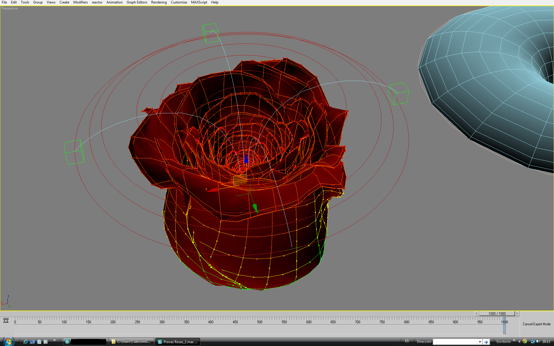 Mientras he estado modelando la rosa un poco, haciendo un pétalo y ir copiando y modificando, antes de leer esto último estaba a punto de hacer algo con helpers que seguían un Path constraint, pero todavía no lo he sacado.