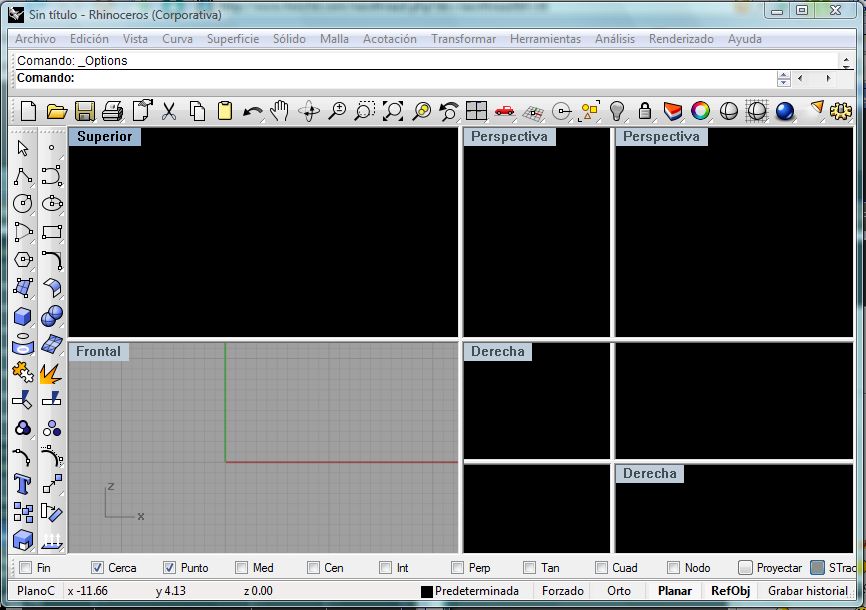 Me arme un PC para trabajar e instalé Rhinoceros 4.0 y se me ponen negras las vistas, esto pasa cuando me acerco a apretar algún botón, y vuelve a aparecer el modelo cuando hago algún clic o zoom.