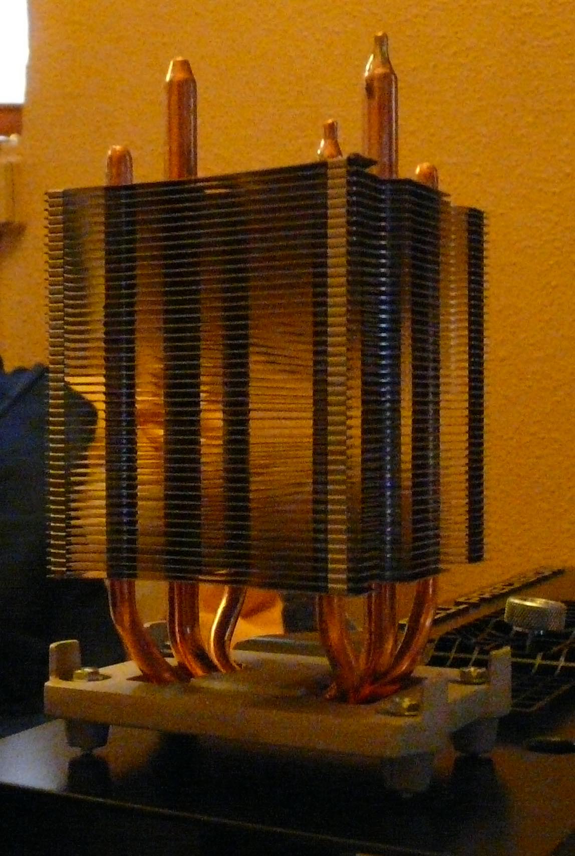 El caso es que este disipador no me convence ni por capacidad de disipación ni por tamaño, es mucho más grande que el disipador de Dell y me obliga a tener quitada la pieza de plástico que tunela la ventilación, con lo cual la temperatura sube entre 5 y 10 grados. La situación es soportable, pero no es la ideal.