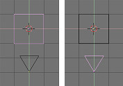 D. En las ilustraciones se muestra cuando el plano está seleccionado (imagen de la izquierda) y cuando la cámara esta seleccionada (imagen de la derecha).