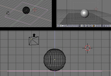 C. Las finas líneas negras forman la cuadrícula o rejilla (grid). Nos serviremos de ella para poder transformar los objetos de la escena con mayor precisión. El círculo de color rojo-blanco que está situado justo en el centro del plano es el puntero 3d. Con el podremos determinar el lugar donde situaremos nuestros objetos en la escena. Con el botón izquierdo del ratón (bir) podemos cambiar su posición: lleva el cursor a cualquier parte de la ventana 3d y pulsa bir.