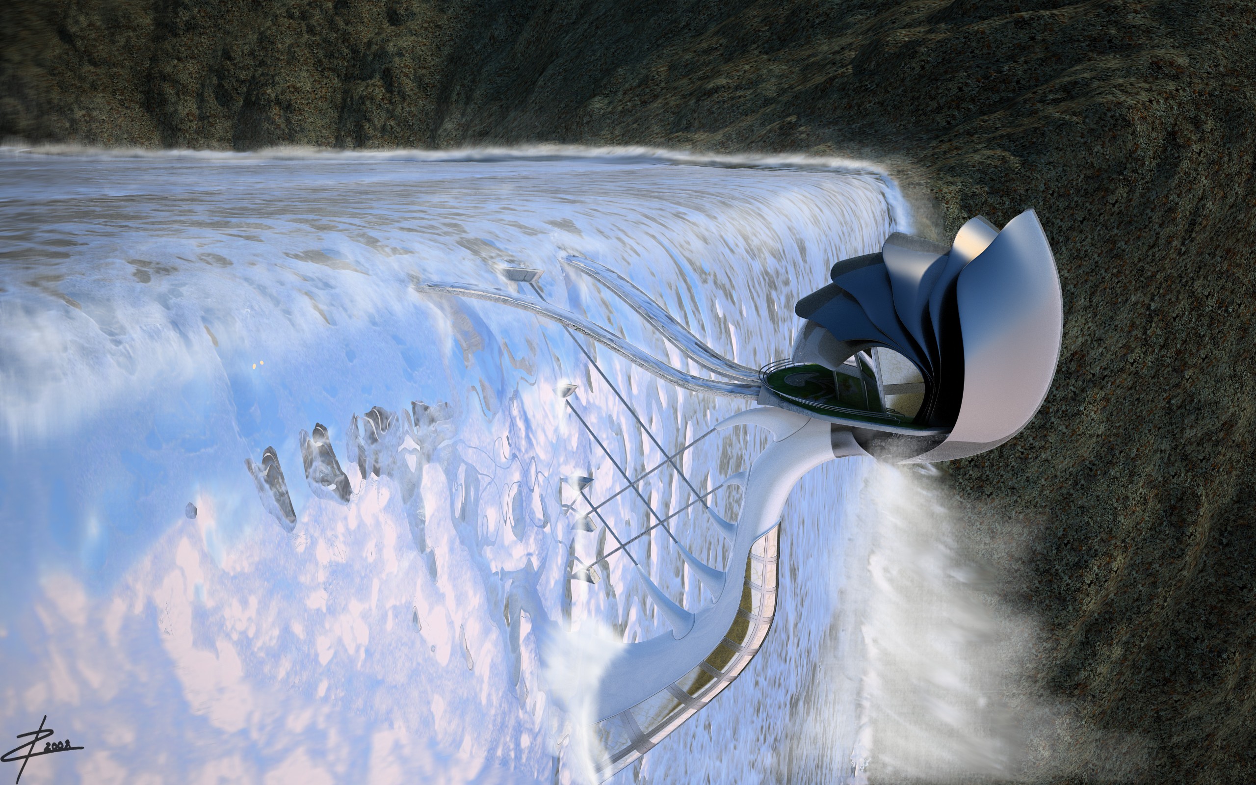 Enhorabuena por la mención, el render guapísimo, el modelado, la idea de cascaron desafiante en la catarata, parece que las cascaras se tienen que plegar y cerrarse cuando el río sube de nivel.