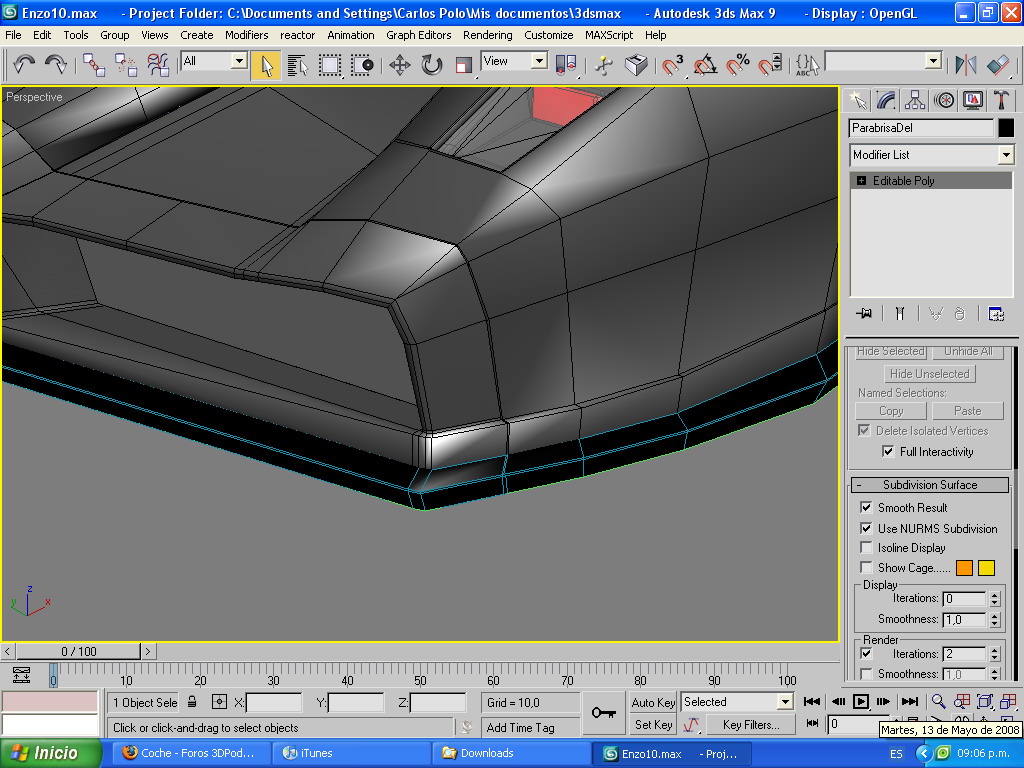 Desde hace unos días estoy haciendo un coche y la verdad que me trae un poco de cabeza algunas cosas, os publico aquí la imagen i solicito algún consejo a aquellos que tengan mayor experiencia modelando coches. Bueno pues lo estoy modelando pieza por pieza dándole luego un extrude MeshSmooth i relax para suavizar los bordes, mi pregunta es como es mejor para hacer la separación entre piezas, como me aconsejáis que lo haga?
