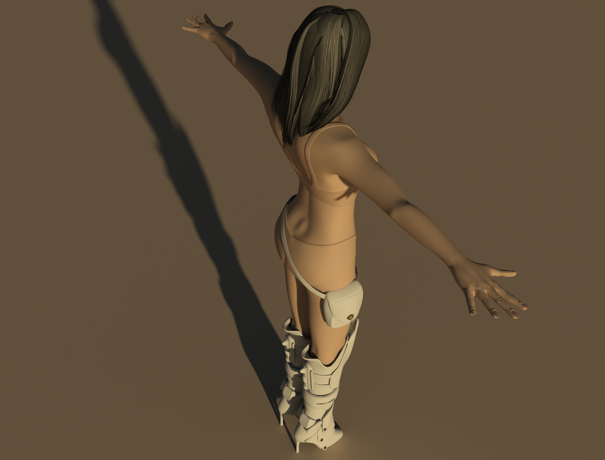 Las botas son una pasada, la tía está bien proporcionada por lo que se ve, quizás como recomendación que te doy es que los brazos se los bajes mucho más para que no te den tantos problemas los hombros, el pelo es lo único que no me mola mucho al hacerlo por planos se notan demasiado y está muy ríjido.