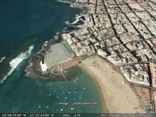 A ver. El estadio está en la ciudad, en la zona nueva, de la ciudad alta. Llamada 7 palmas. La zona sur es la zona guiri, de apartamentos y hoteles.