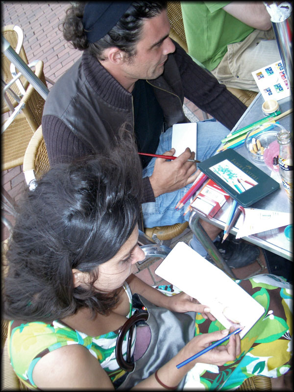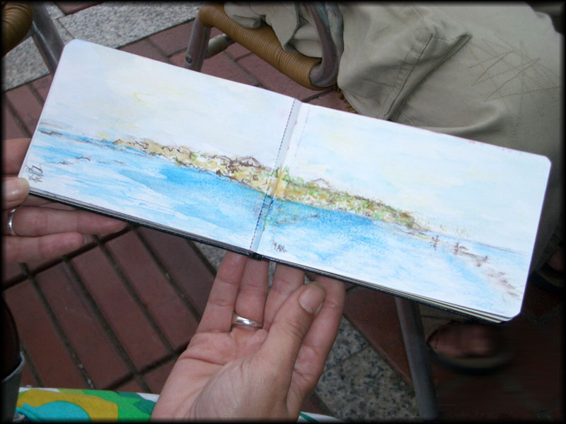 Acortes, la acuarela es del 3ds Max en el moleskine de Pola. Max saca unas fotografías de mis dos garabatos.