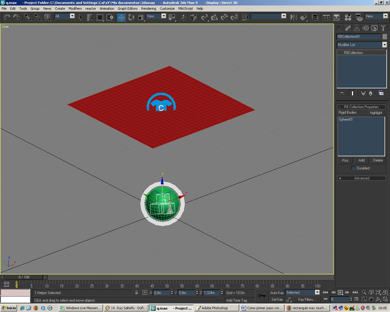 -Ahora vamos a darle altura a el plano. O sea la altura de la cual va a caer para así cubrir la esfera o el objeto que hallamos puesto abajo.