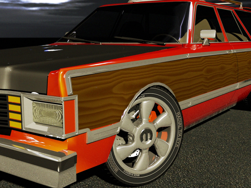 Pues me parece bastante bien el modelado, aunque se ve algo duro. Las molduras las veo cojonudas. Le faltaría detalles en los neumáticos, las bandas laterales, ese dibujo no me encaja mucho con el coche y la época, los materiales están poco definidos, les falta reflexión, sobre todo a los cristales. También quedaría mejor si te trabajaras más detalles como los faros, los pasos de ruedas interiores, etc.
