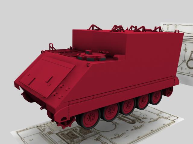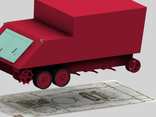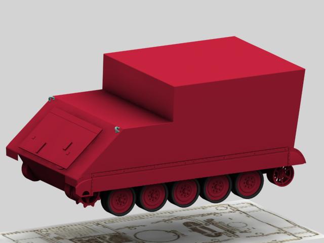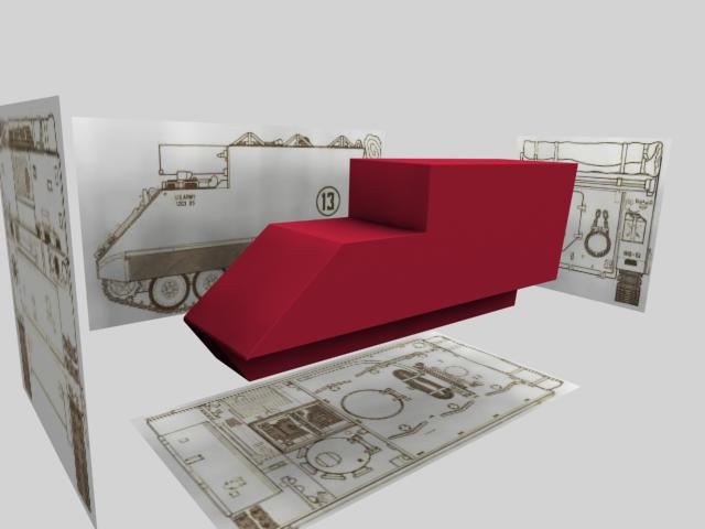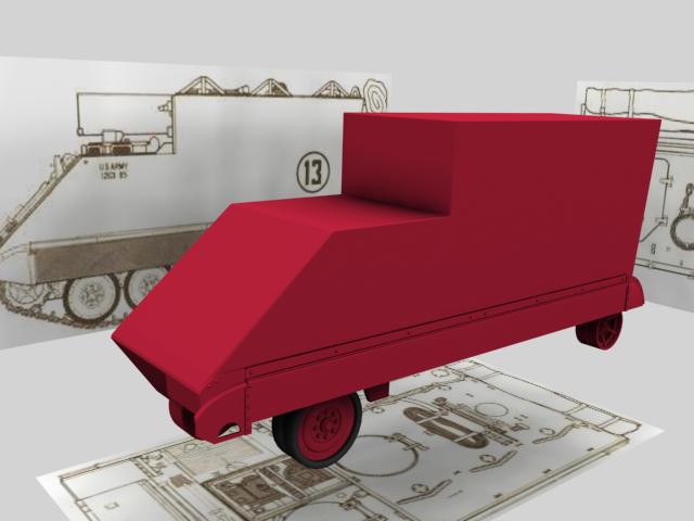 Básicamente he modelado la mitad de la forma exterior, después iremos añadiendo detalles que hacen de éste vehículo tan peculiar, algo raro en su género. Un blindado para los jefes, sin armamento, hecho de esa manera para que los jefes puedan estar dentro de pie sin agacharse.