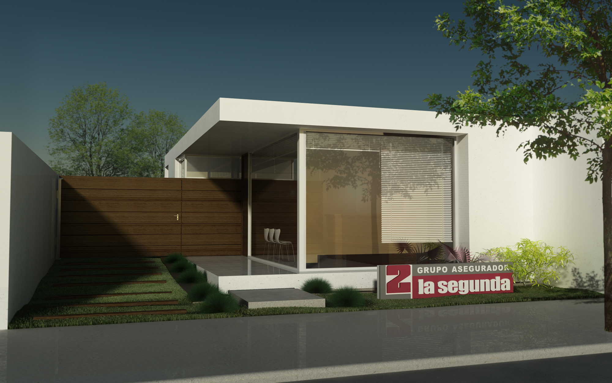 Mejoraría la textura del portón, que no me convence, el reflejo del pavimento como ya te han dicho, porque no me pega que tenga, y el césped, está demasiado tieso, yo utilizo Maya, pero supongo que, todos los programas te permiten darle efectos, es demasiado irreal sobre todo en primera línea que me recuerda a un corte de pelo militar, saludos y suerte.