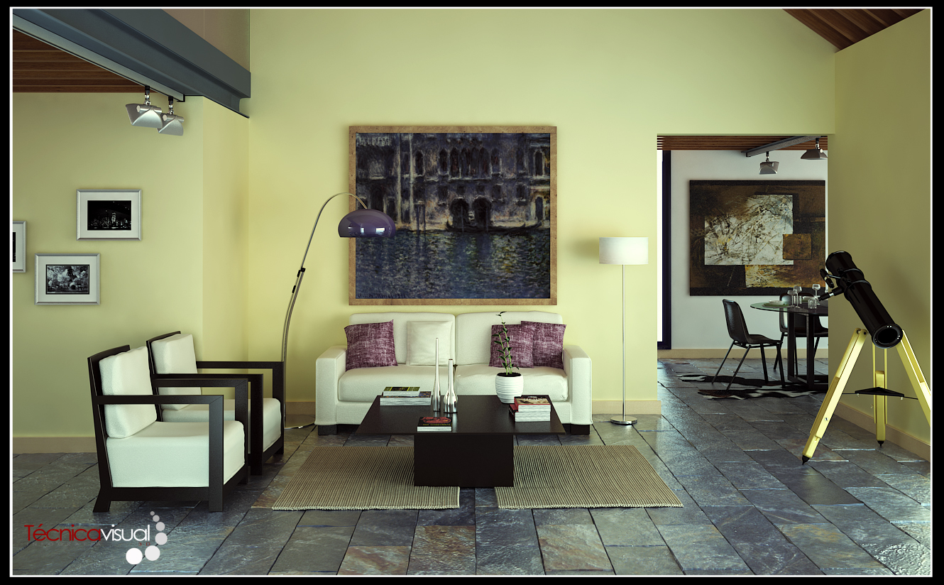 El suelo está modelado, dividido en baldosas y colocado una a una a mano aleatoriamente con un mapping aleatorio, si le interesa mucho a alguien lo explico paso a paso, pero aviso de que es un royo. Gracias por los comentarios. Un saludo.
