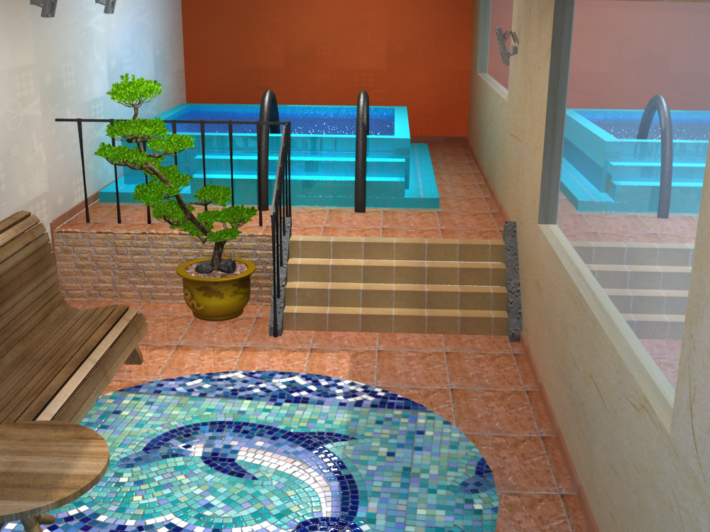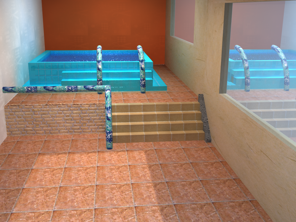 Hola. Lo que te puedo decir es que veo que algunas medidas o proporciones no están bien, creo que te falta un poco más de detalle a la hora de modelar, fíjate que los escalones con demasiado angoestos y la baranda de la pileta es demasiado grande en relación a los escalones y en relación al tamaño de la pileta.
