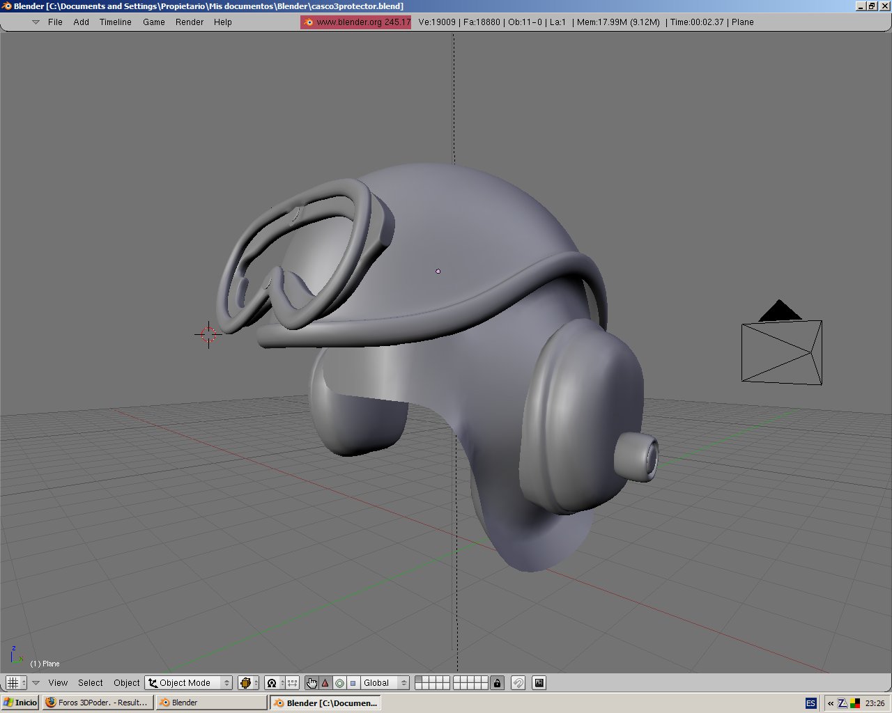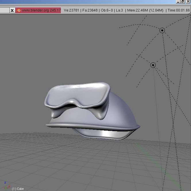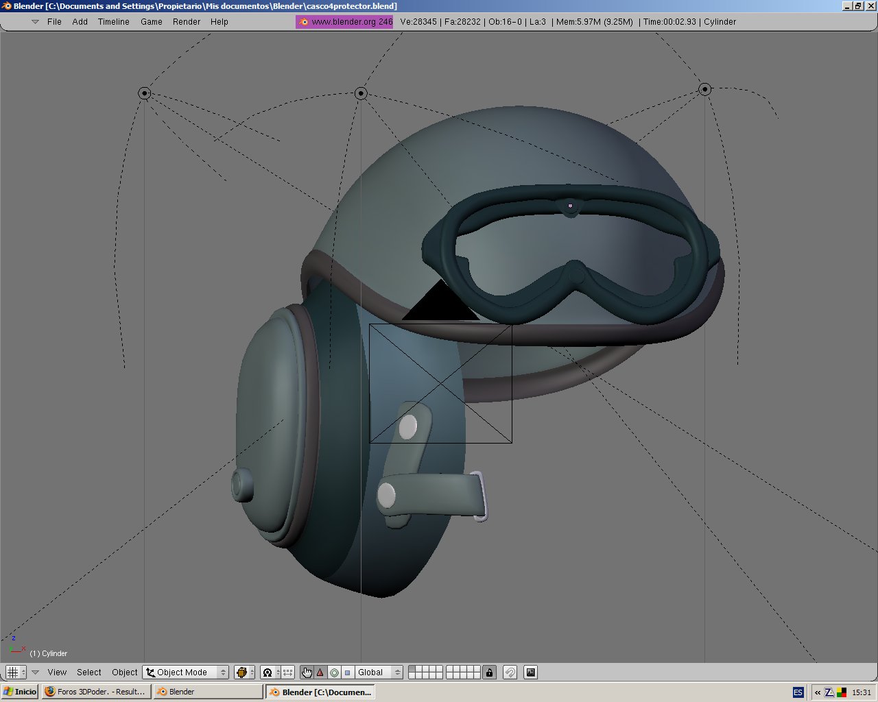 Bueno críticas aparte, por fin entendí como va la telilla interna que cubre los cascos y la cabeza, pero necesita Bump mapping, y ponerle una textura, o modelar al detalle (cosa imposible si quiero mantener el número de polígonos bajo), así que, por ahora no llevara los boquetitos.