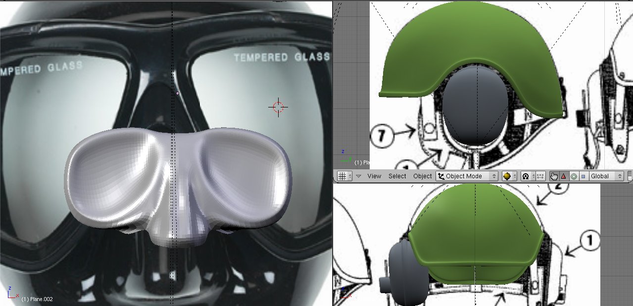 Las gafas del casco militar son muy parecidas a las de bucear y como no encontraba referencias militares de esas gafas he usado las de buceo y después le haré los cambios pertinentes.