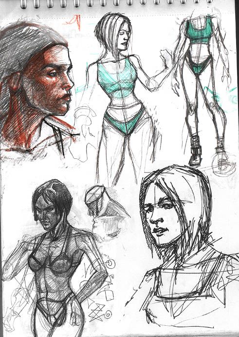 No he usado referencias de fondo de pantalla para calcar la figura, ni referencias fotográficas específicas, primero hice unos dibujos diseñando aproximadamente lo que tenía ganas de modelar (aquí adjunto), comencé el modelado teniendo siempre en mente la ubicación del esqueleto, luego para tener una base firme de los músculos recurrí a páginas de loomis (por ejemplo: http://www.fineart.sk/show.php?w=930 http://www.fineart.sk/show.php?w=931 http://www.fineart.sk/show.php?w=935), y finalmente el uso del espejo y el tacto (con el tacto hay que tener especial cuidado, no vaya a ser que perdamos el rumbo), saludos.