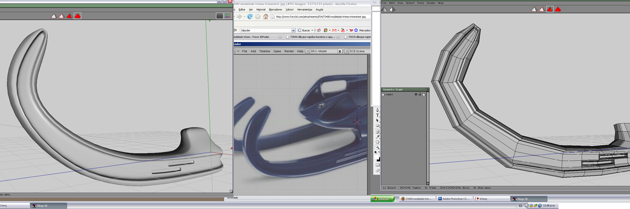 Utilizo 3ds Max. El Blender de oídas y poco más. En realidad, la forma de los patines quiero utilizarla para el modelado de una embarcación tipo catamaran (swath, concretamente) y necesito que el suavizado de formas esté muy conseguido, por eso creo que si empiezo a extruir caras a partir de la solución que me propones no consiga un acabado de aspecto pulido. Busco la manera de hacerlo mediante solevación, de una forma coherente. Muchas gracias por tus sugerencias, Kellog.