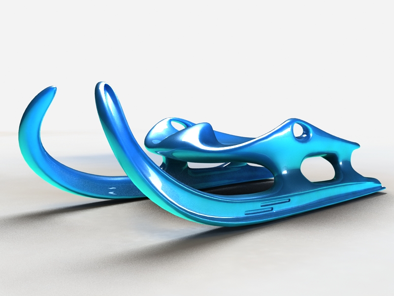 La verdad es que lo que es el modelado te ha quedado bastante fiel. Lo único que el material parece más bien la espuma de afeitar esta que viene en crema azul, pero por lo demás muy bien. Por cierto, gracias a este trineo he descubierto cómo hacer boquetes cuadrados en Blender sobre objetos subdivididos, aunque hay que retocarlos mucho para que quede bien.