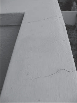 Es acertado decir que nada en este mundo permanece intocable para el tiempo y el clima. Uno de los más grandes errores cometidos por los artistas de texturizado es pasar por alto, y consecuentemente excluir, los efectos que el mundo, también como la mera existencia de un objeto dentro de la dimensión del tiempo, tiene sobre cualquier superficie. También muchas veces vemos cosas creadas en 3d que están demasiado limpias. No sugiero que todo necesite mostrar algo de desgaste producido por la intemperie en tus texturas, sin embargo, debería mostrar algo sutilmente. Cuando texturizas cosas que generalmente permanecen descubiertas, en contraposición a las cosas que están bajo techo, tienes que considerar cómo el clima las afectara con el paso del tiempo. Una casa en un suburbio, bonito, tranquilo y soleado va a mostrar alguna forma de envejecimiento y daño, no importa cuántas veces los amantes propietarios rocíen la estructura con la manguera del jardín. El sol, la lluvia y el viento afectan todo lo que tocan en algún grado, sin hacer caso si estas cosas están hechas por el hombre o por la naturaleza. Los dos aspectos más dañinos del clima son el sol y el viento. La lluvia tiene un considerable impacto sobre las cosas, pero dado que no hay un lugar en la tierra donde llueva todos los días, este efecto no es consi-derablemente dañino como los otros dos, sino más bien juega un papel ligeramente diferente, el cual discutiremos en un momento. Sal a dar un paseo, y nota la forma en la cual el clima a afectado todo. El sol seca las cosas, causando que los colores se destiñan y las sustancias como la pintura o el lodo se vuelvan frágiles y quebradizos (ver figura 1-4, la cual es una fotografía de la pared del balcón de mi casa), mientras que el viento sopla minúsculas partículas de arena y otras sustancias, causando gradualmente una erosión minúscula en todo.