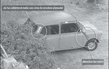 O quizás el automóvil ha estado en un auto lavado y aún muestra los Trazos de los mecanismos de limpieza en su carrocería. El movimiento circular de los cepillos dentro del auto lavado deja espirales sobre la pintura del automóvil que se ven desde ciertos ángulos. Puede ser que el vehículo haya sido robado, en cuyo caso las cerraduras de las puertas pueden mostrar signos de Modifi-cacción, tales como arañazos alrededor del cerrojo donde un pedazo de alambre pudo a ver sido usado para abrir la cerradura. Tercero, ¿para qué es usado el vehículo? Una camioneta pickup 4x4 es probable que sea usada para viajes de safari y turismo de aventura a campo traviesa, lo cual significa que su carrocería probable-mente mostrara signos de tales actividades.