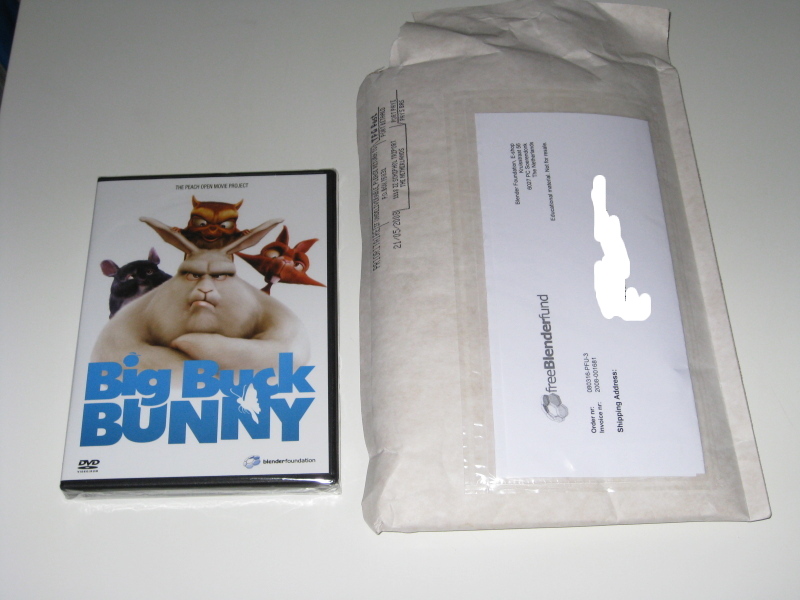 Termino de llegar a casa después de estar todo el día trabajando y me he encontrado con una sorpresa, en el buzón tenía el DVD de Big Buck Bunny. Increíble cómo funcionan esta gente ya que, creo que fue el martes cuando les llego a ellos al Blender institute. Voy a cenar ponerme una copa y ver el corto tranquilamente, ya os comentaré mis impresiones.