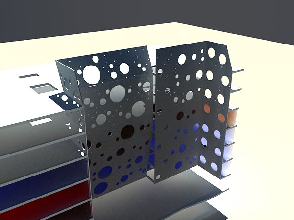 Esto te lo comento a nivel de modelado, a nivel de iluminación era un lío, ya que, cada edificio tenía una fachada entera de cristal, pero no trasparentes 100% unos eran translúcido, s otros opacos, o trasparentes en un 40% o 60%, en fin, de todo, además de la luz artificial que tiene, creo que en total usé unos 300 luces en uno de los edificios, el render era Final Render stg 0.
