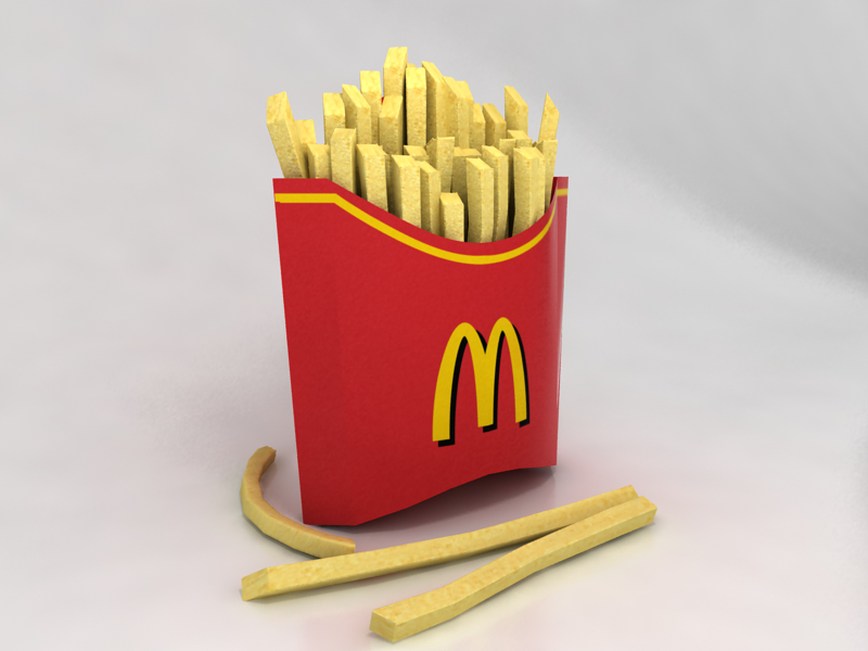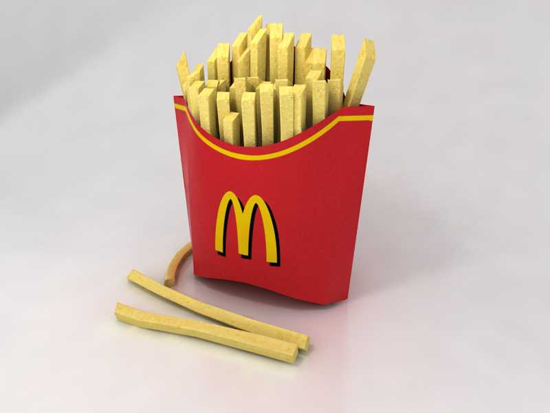 Compra unas papas de referencia. Está muy bien, pero lo que veo en primer lugar es que todas están en la misma vertical, desordenalas un poco, rotalas, un poco de caos ahí. Yo les metería también un mapa de especular para que parezcan más grasientas.