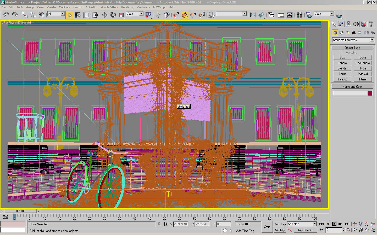 La imagen esta echa con 3dsMax 2008, Ivy y Adobe Photoshop para el desenfoque de los modelos del fondo. Tanto los bancos, como las farolas y la cabina son Evermotion por falta de tiempo, que ya iré cambiando. El edificio del fondo esta echo en plan rápido por lo mismo. Pero bueno ahí queda. Un saludo a todos.