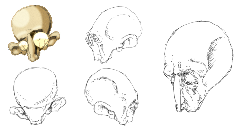 Se me hace muy complicado para modelar porque la cara es muy caricaturezca, no es simétrica, un ojo más grande que el otro y uno más abajo que el otro y lo estoy haciendo en base a tutoriales que encontré para modelar una cabeza humana.