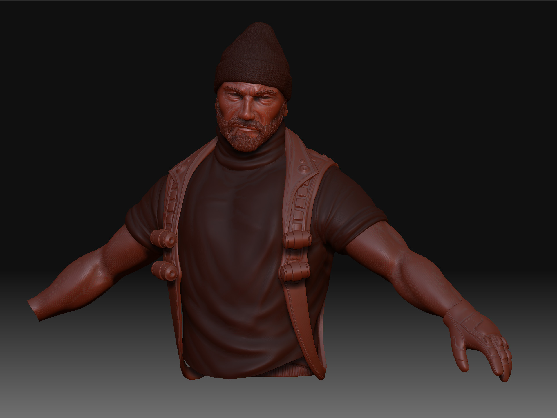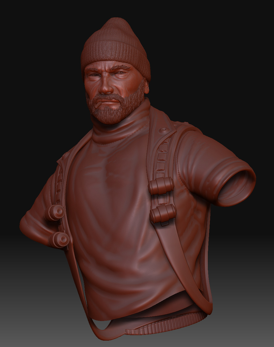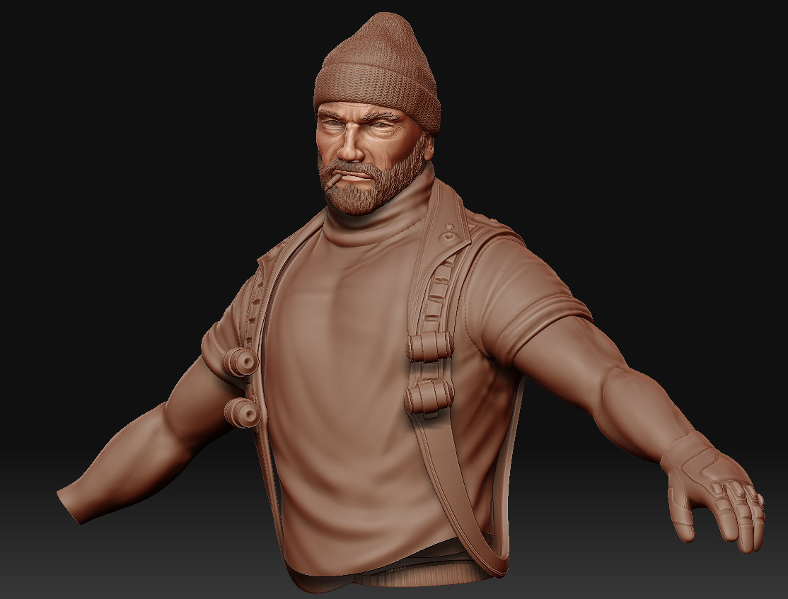 Gracias Trancos. Para el gorro hice la base en 3dsmax y en el ZBrush le di forma y usé un alpha que hice con una textura de lana. En general me hago los alphas yo mismo.