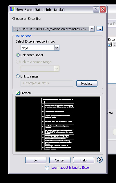 También existe otra opción para vincular tablas desde Excel, con el comando tabla, este te desplegara un menú, te indico los pasos a seguir: