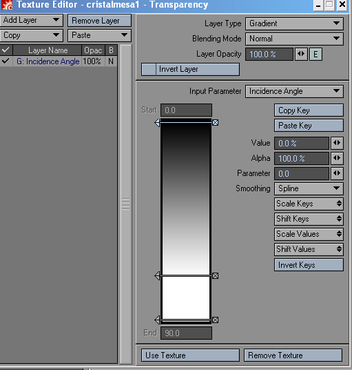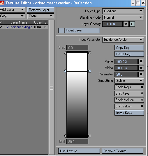 También hay que tener cuidado con la inversión, ya que la flecha intermedia tiene que ir para arriba, parameter 20%, una vez arreglado esto, el cristal sale bien.