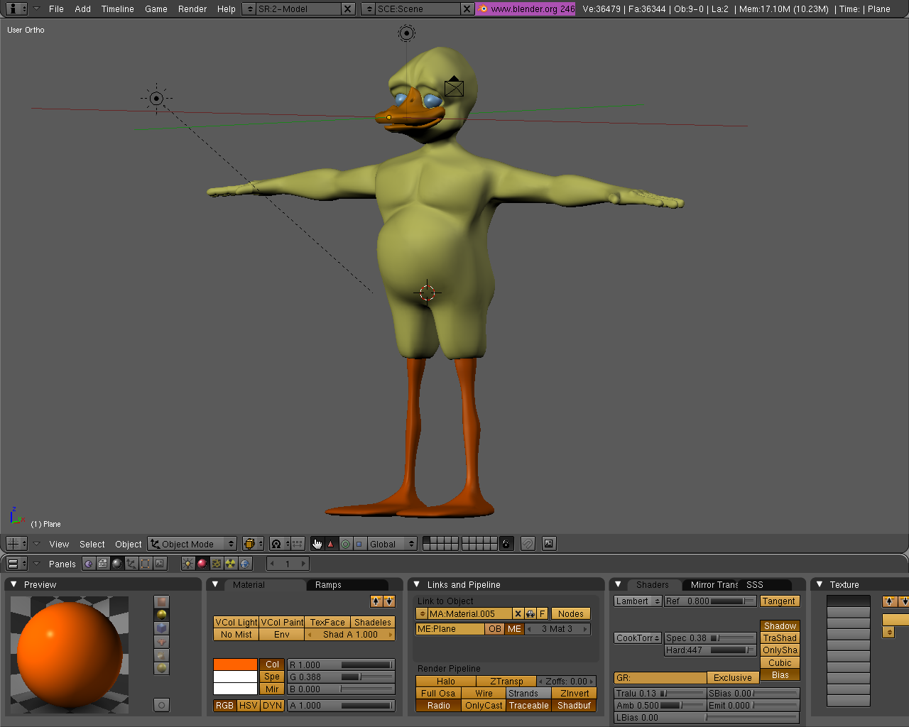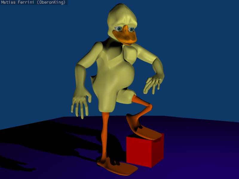 Algunas posturas del pato actor. Espero les gusten. Aun quedan cosas por aprender sobre le armature de Blender, por ejemplo, como restringir el movimiento de los Bones, pero ya lo descubriré o alguien lo dirá.