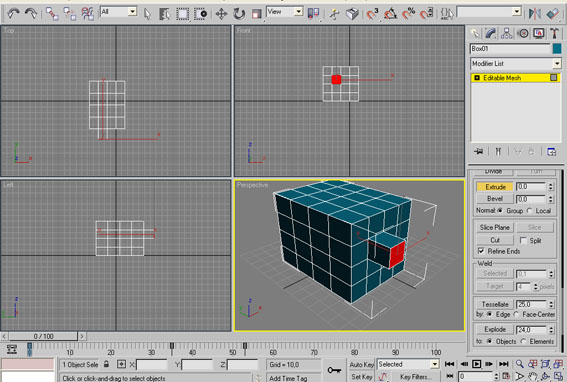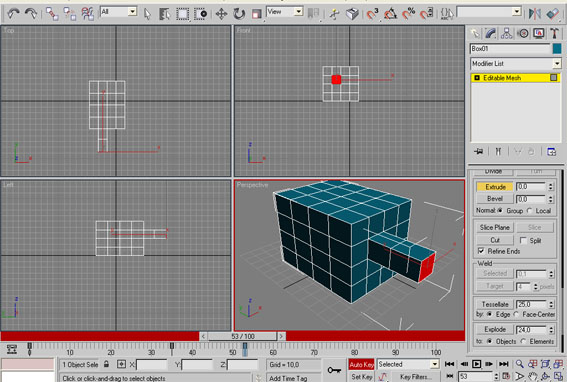 4- Auto key, voy al frame 50 y le doy extrude, hasta ahí perfecto, vuelvo a 0 y luego voy al 50 y se ve cómo queda extruido, ahora el problema es que, a esa misma extrusión recorro los frames hasta el 80 y le doy extruir nuevamente, en otra dirección, pero al volver a cero me mantiene los polígonos extruidos, que hago? Gracias por la ayuda.