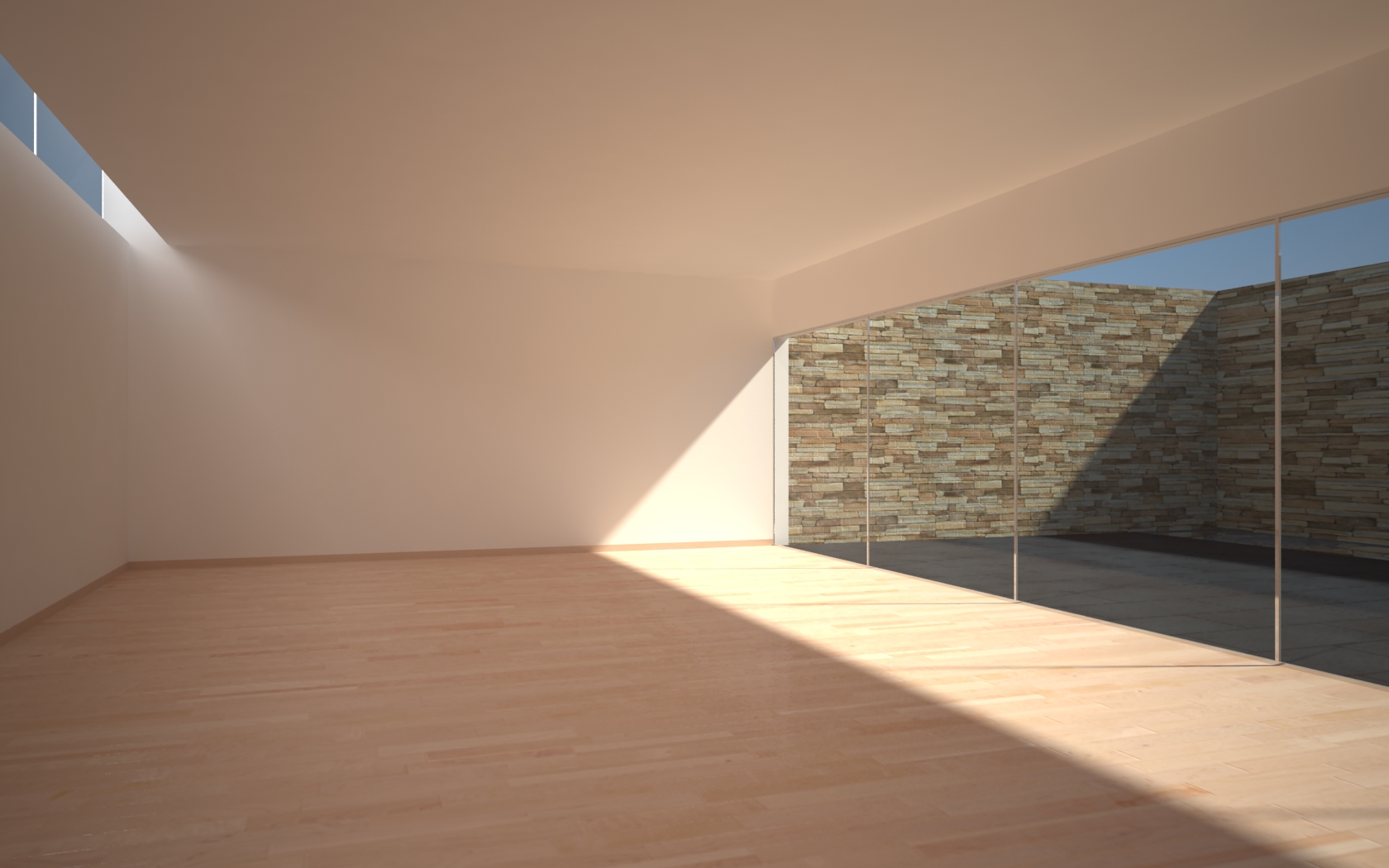 La imagen no tiene mayor pretensión que la aplicación de materiales, conseguir un espacio agradable, y manejarme en la introducción de luz en una escena con vista a un exterior. Además, es el primer intento serio de escena en Vray que hago y lo primero serio que publico por lo que antes de meterme en mobiliarios y demás complicaciones quería dominar los parámetros de iluminación.