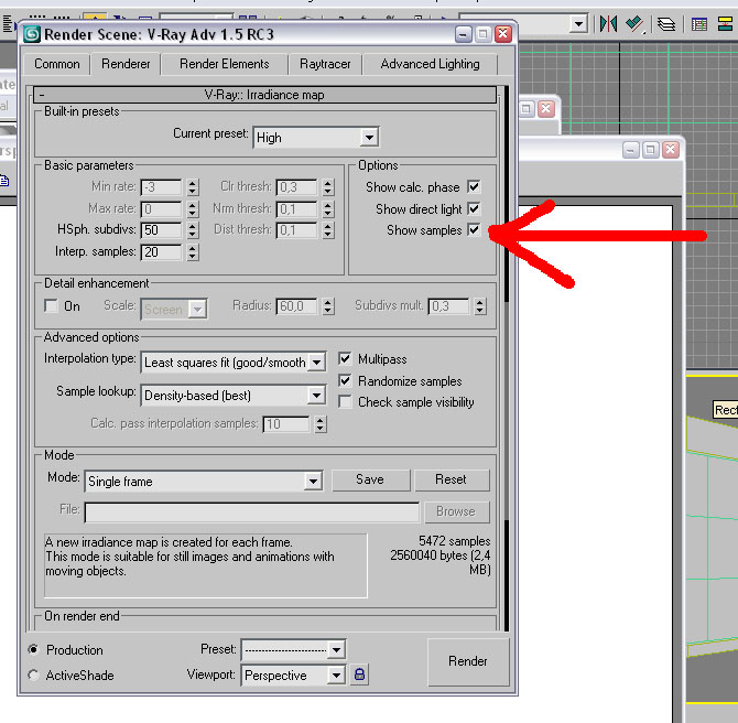 Hola amigos estoy haciendo una escena exterior de un edificio necesito terminarlo antes posible por que es para un cliente el problema que me ocurre es el siguiente yo activo el Irradiance Map y empiezo a renderizar cuando van finalizando los prepassos observo que tiene como un granulado en el dibujo y cuando renderiza sale el mismo granulado quite el Irradiance Map y ya no tengo ese granulado, pero no tengo sombras, bueno de los RPC n tengo sombras del edificio tampoco, entonces no c como me pueden ayudar yo mando ahora una fotografía para que comprendan más fácil espero que me hayan entendido y si ven otros detalles para que me quede mejor pes por favor ayuda.