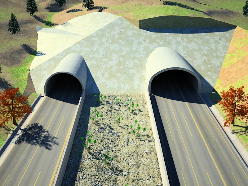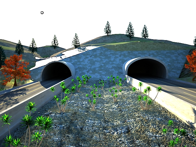 Trabaja unas texturas buenas, que ese verde canta mucho, y por favor quita esos árboles y esas plantas que distraen a los conductores. Un saludo.
