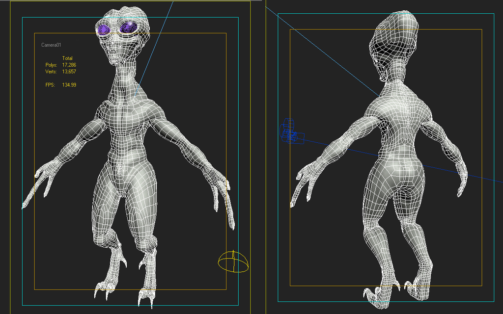 Hola amigos foreros por fin me ánimo a publicar un modelo mío, es un alienígena que hice meses atrás, solo terminé el modelado aún falta texturizar y riggear(si así se dice), use el 3ds Max 9 y Adobe Photoshop para la imagen, espero sea de su agrado. Saludos.