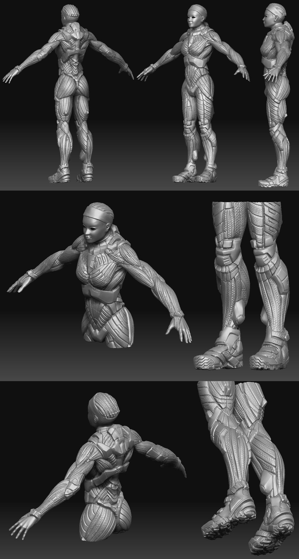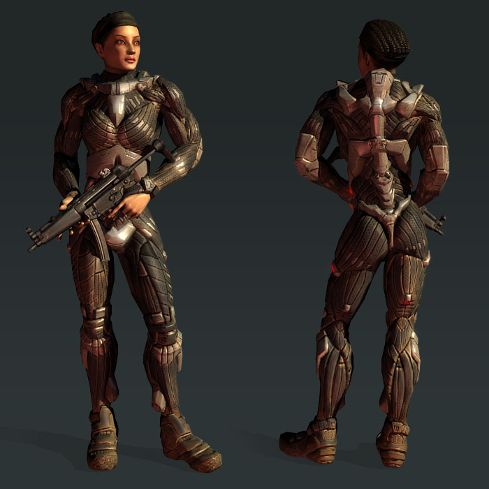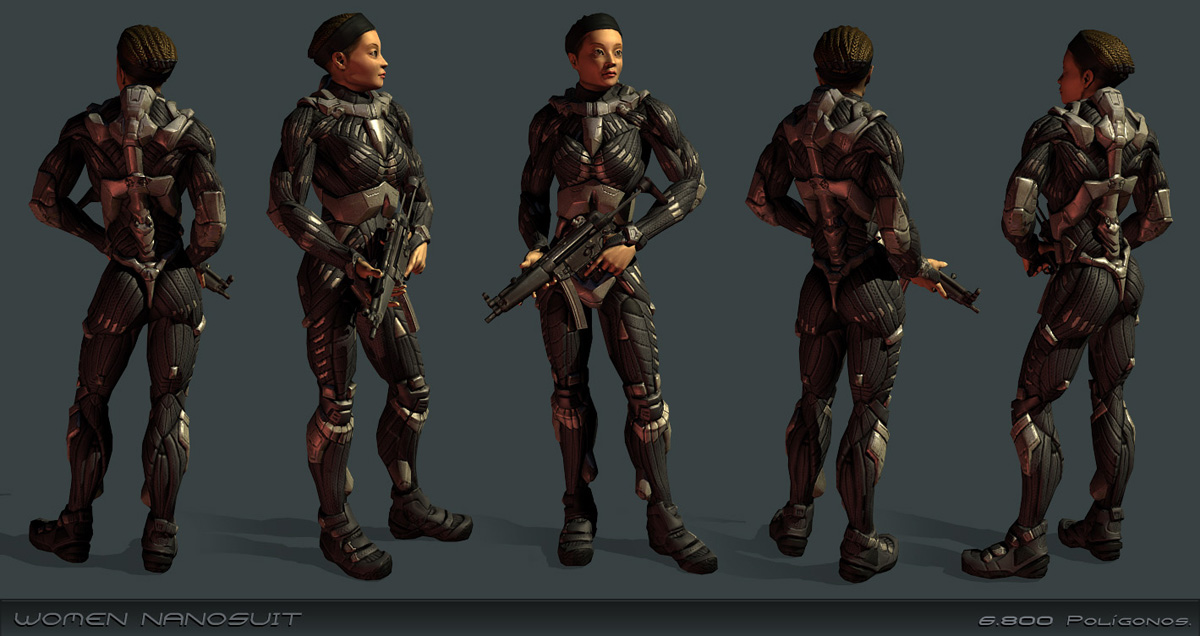 Hola, soy nuevo aquí y os saludo a todos. Espero poder aportar algo y también aprender mucho de vosotros. He modelado esta variante del nanotraje del conocido juego Crysis (Crytek) pero en versión femenina.