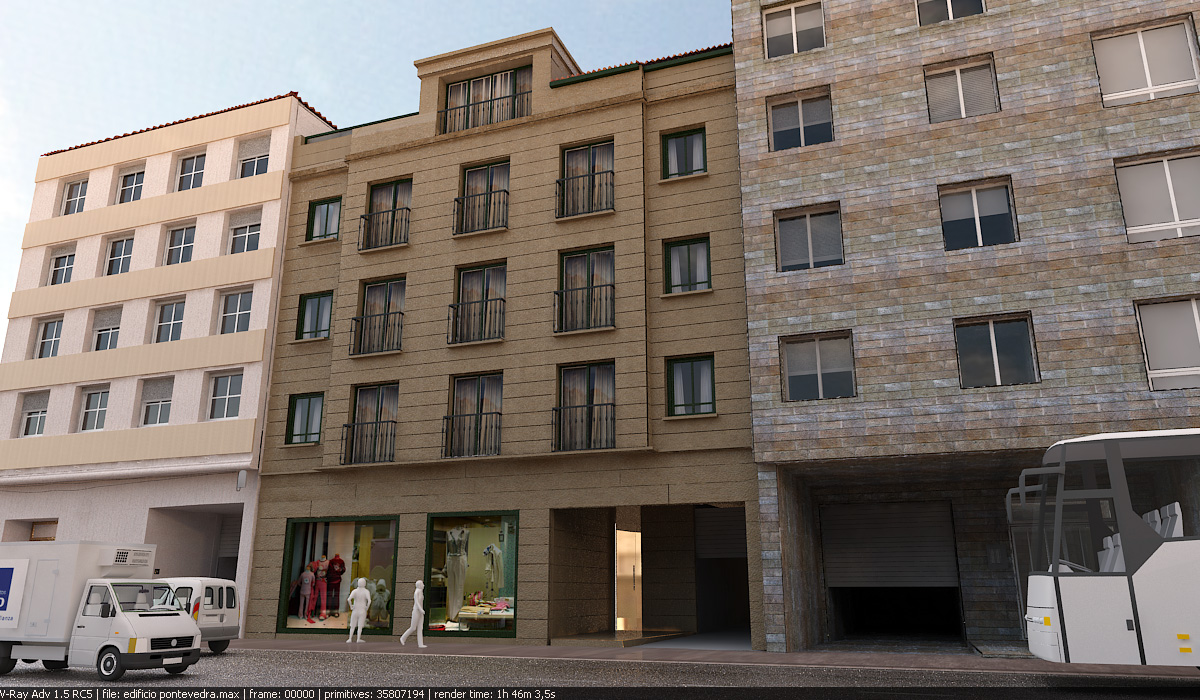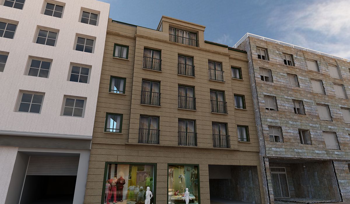 Hola, yo soy aún algo novato, pero la puerta de la supuesta tienda del bajo comercial, donde esta? Por lo demás aparte de meter sutiles diferencias entre ventanas para que no se vean tan iguales, lo veo bien, pero ya te digo soy novato a ver si se pasa un máquina y te lo crítica mejor que yo. Saludos.