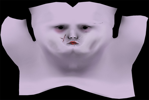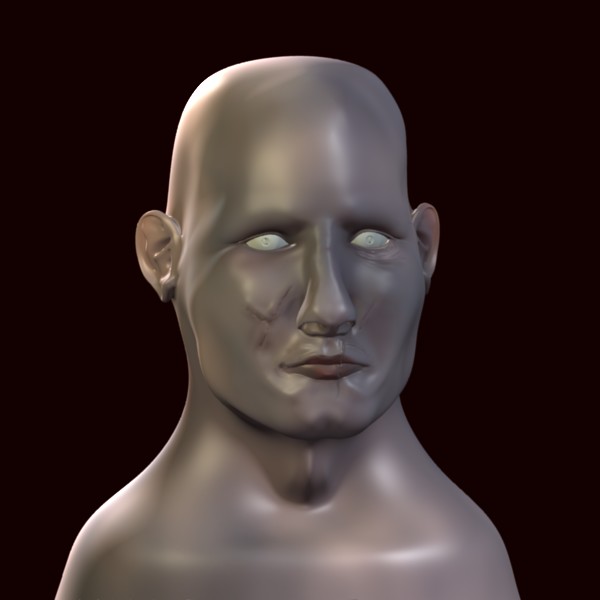 No voy a decir hasta dónde estoy, por que puede haber menores leyendo esto. Bueno, subo los avances (si se le pueden llamar avances) y desvelo que el personaje pretende ser Eduardo manostijeras. Por lo menos en el mapa de color en algo le recuerda, pero en 3d no deja de recordarme a una mezcla entre marylin Manson, Dominic purcell y a veces hasta a freddy Mercury, y ahora ya ni a esos.