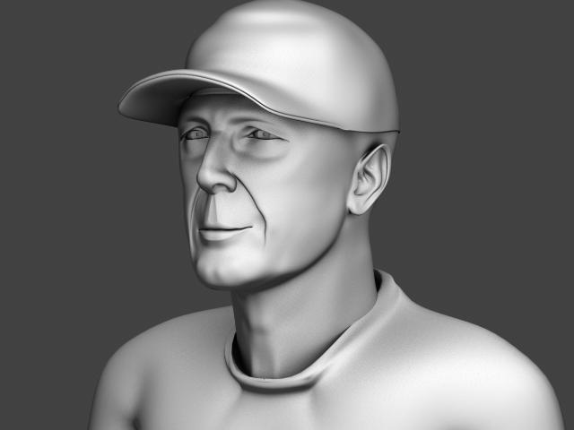 Hola a todos, pues aquí dejo la primer versión de mi reto de modelar a Bruce Willis, mi intención era el modelar con lo cual ya lo texturizare más tarde (se me da muy mal las texturas necesito más práctica) lo he hecho tipo busto sacando un render en oclusión, bueno pues espero que os guste. Un saludo.