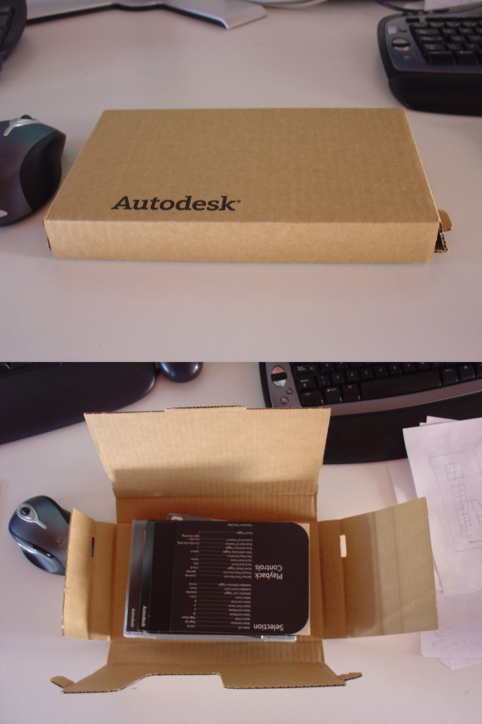 Con el AutoCAD architecture 2008 y 2009 también te permiten acceder al manual en formato papel tras solicitarlo por internet. Supongo que les servirá para ahorrar costes, porque siempre abulta y pesa más que la caja de pin y pon del software, y eso que este año van 2 DVD, uno para 32 y otro para 64 bits.