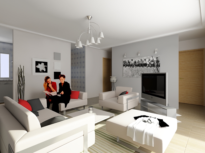 Demasiado formal todo como para que estén sentadas las dos srtas sofistificadas en el brazo del mueble, y por lo mismo no pondría la playera, lo veo como un gesto innecesario, buen render, solo comprobaría algunos valores con la luz se está quemando un poco al frente, mueve los valores de la cámara tal vez el ISO o el Shutter Speed. Saludos.